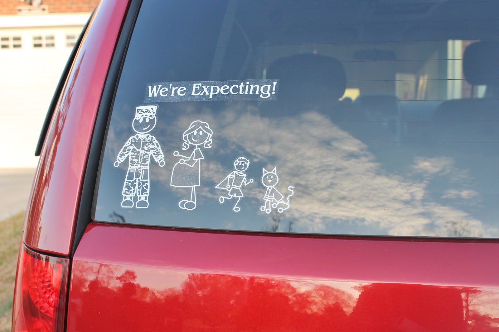 I am sure you see cars everywhere with stickers on the back window to show their family. I have been a lot more lately and have always thought they were adorable. Because of this, I thought family stickers would be a great way to announce that we have another little one on the way!